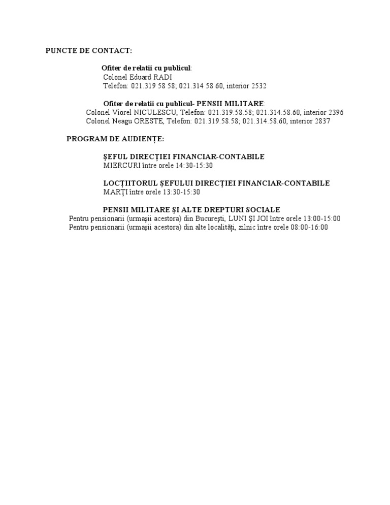 Trebuie să activați javascript pentru a o vedea. Lista candidatilor selectati la concursul organizat de casa nationala de pensii publice pentru ocuparea prin recrutare a functiei publice vacante de executie de posturi vacantecasa de pensiitransferdate contact casa de pensii cnpp. Operatiunea de înregistrare a cererilor de deschidere a drepturilor de pensie se va realiza telefonic la numerele: